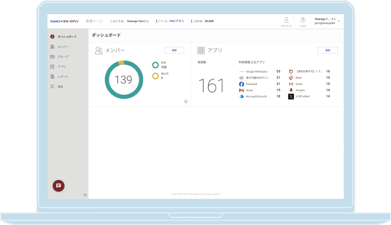 「ID・パスワード管理」「シングルサインオン」「認証強化」「ID連携」を備えた、クラウド型のID管理(IDaaS)です。