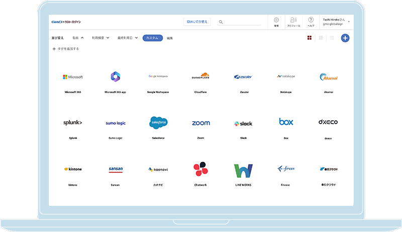 社内システムもクラウドサービスも簡単に登録可能です。