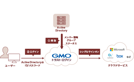 - Active Directoryとの連携や、SAMLの仕組みを利用してGoogle Workspace(G Suite)やSalesforceなどのID・パスワードでGMOトラスト・ログインする機能、SCIMプロトコルを使いLDAPmanagerと連携し、Active Directoryと連携、SCIMプロトコルを使いLDAPmanager(製品)と連携し、GMOトラスト・ログインへユーザー情報同期を行うことができるオプションがございます。
