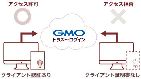 - 電子証明書がインストールされたデバイスからのみGMOトラスト・ログインへのアクセスを許可する機能です。