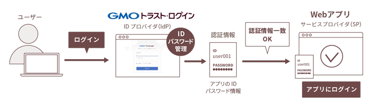 GMOトラスト・ログインのシングルサインオン(SSO)は以下の3つの仕組みで実現しています。